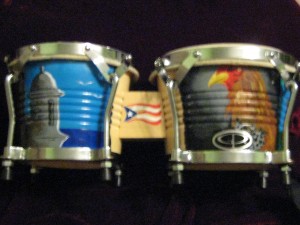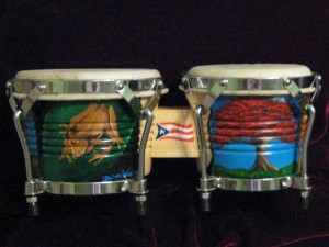 The Bongos are painted with themes of Puerto Rico, around the entire wooden base fo the bongos. If interested in some bongos please let me know at least 3 weeks before they are needed. Thanks